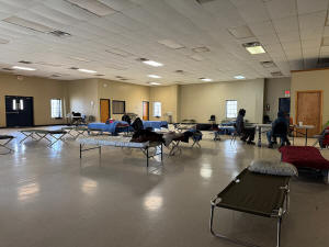 A smattering of people sit around the Humphreys County warming