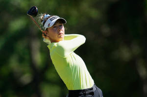 Nelly Korda, of the United States, hits from the third tee during