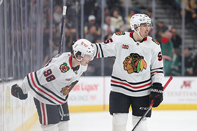 center Connor Bedard (98) and defenseman Artyom Levshunov (55)