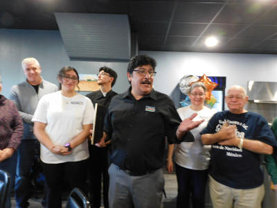 conference as SEIU Local 99 Executive Director Max Arias, left, and