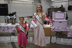 giving away goodies. Paige gave the bucket to Junior Miss Courtney