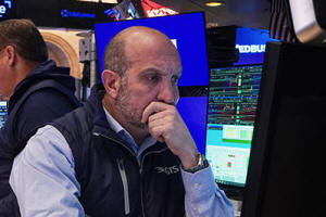 Specialist James Denaro works at his post on the floor of the New