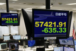 Electronic stock boards show Japan's Nikkei index at a foreign