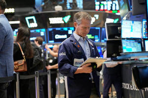 Bobby Charmak works on the floor at the New York Stock Exchange in