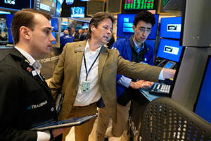 Patrick McKeon, center, works on the floor at the New York Stock