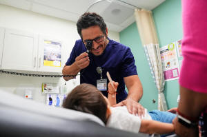 Pediatrician Irving Phillips, left, examines a 16-month-old boy at a