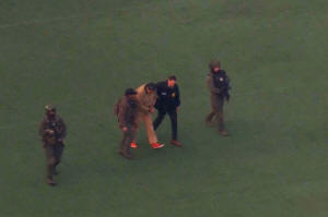 flown by helicopter to Manhattan from Brooklyn, where he is jailed, and