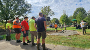 Calvin Aukamp is working on putting up a Gaga ball pit by one of the