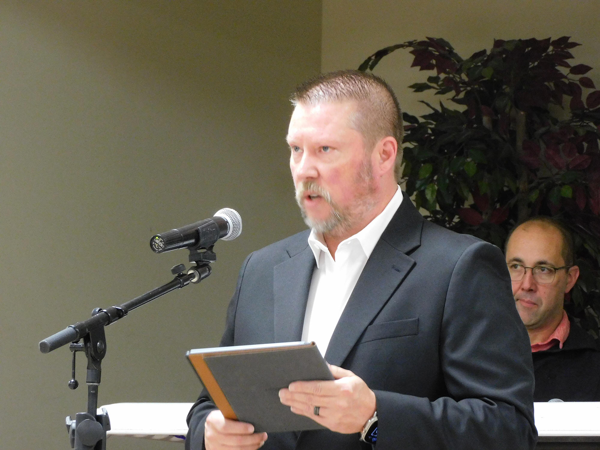 Master of Ceremonies Lincoln Mayor and veteran Tracy Welch announced