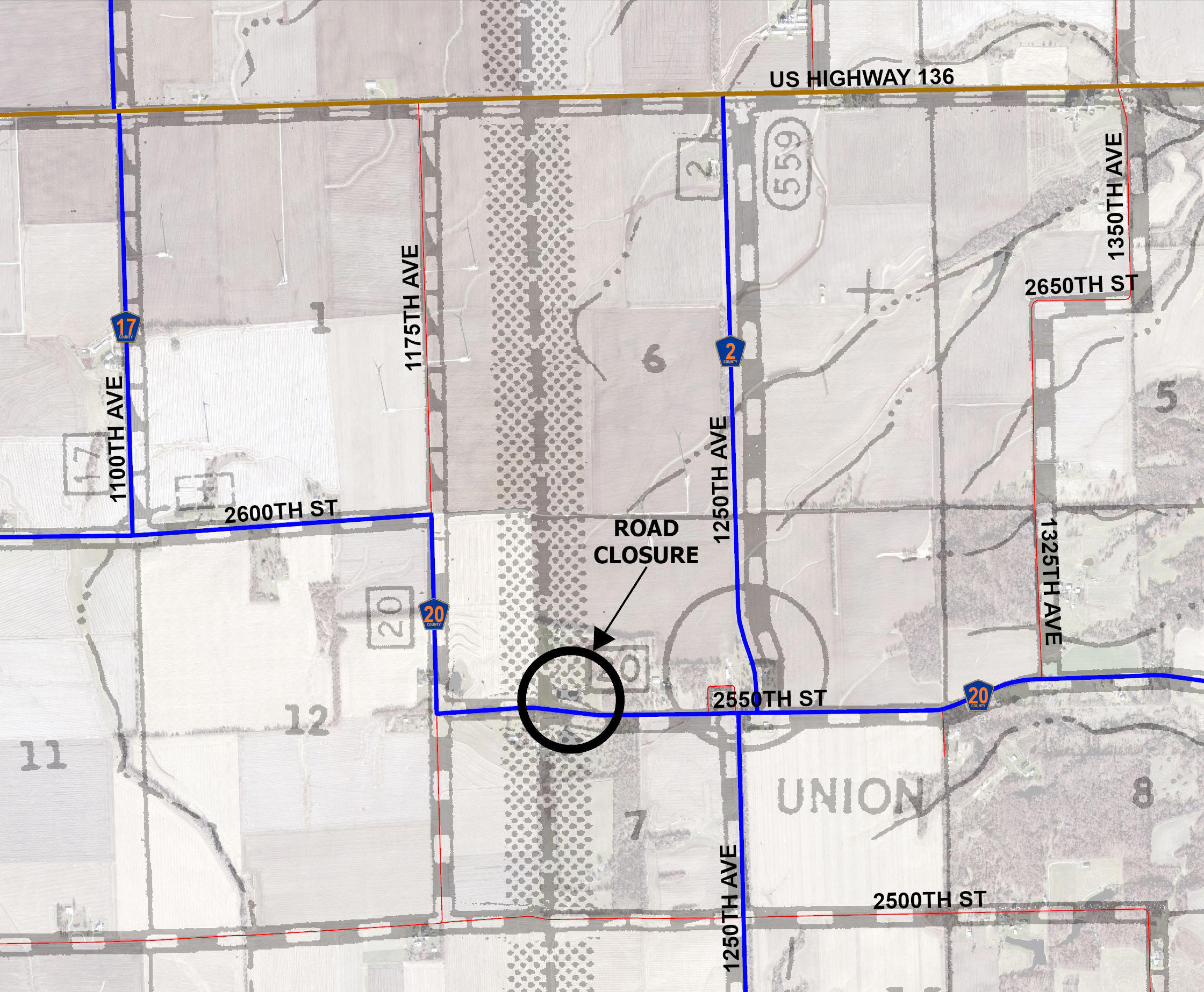 culvert. The road will be closed between 1175th Avenue and 1250th