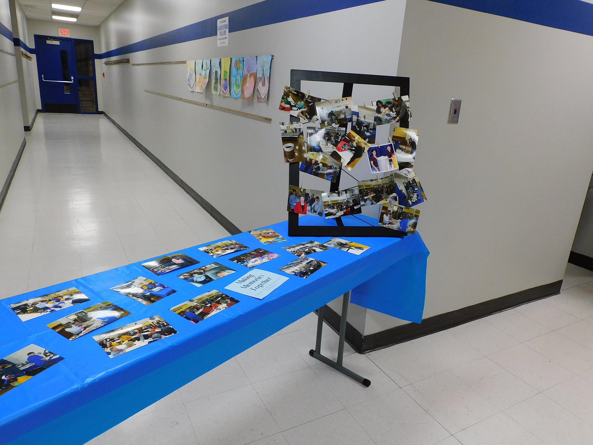 set up with photos and displays reflecting the history of the