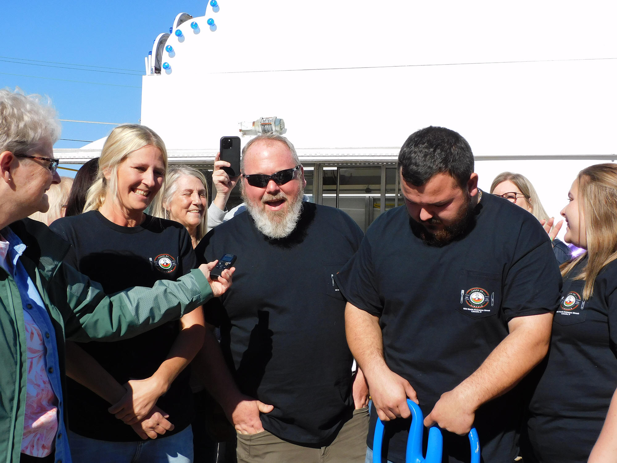 Behind the ribbon for the cut was Tim Brady, Wendy Long, Cody Brady with Timbre, Mady Verd, Tim’s parents Connie and Jeffy, Wendy’s parents Karen and Danny and the Brady children Devin, Hailey and Rylee. Also joining the Brady family behind the ribbon were representatives from each of the food trucks and tents. Those included T & D’S, Daily Wrap, Taste of Lincoln, Samsational Treats, Farm Fed Coop, Loo’s Sugar Buzz, and Baked and Loaded.