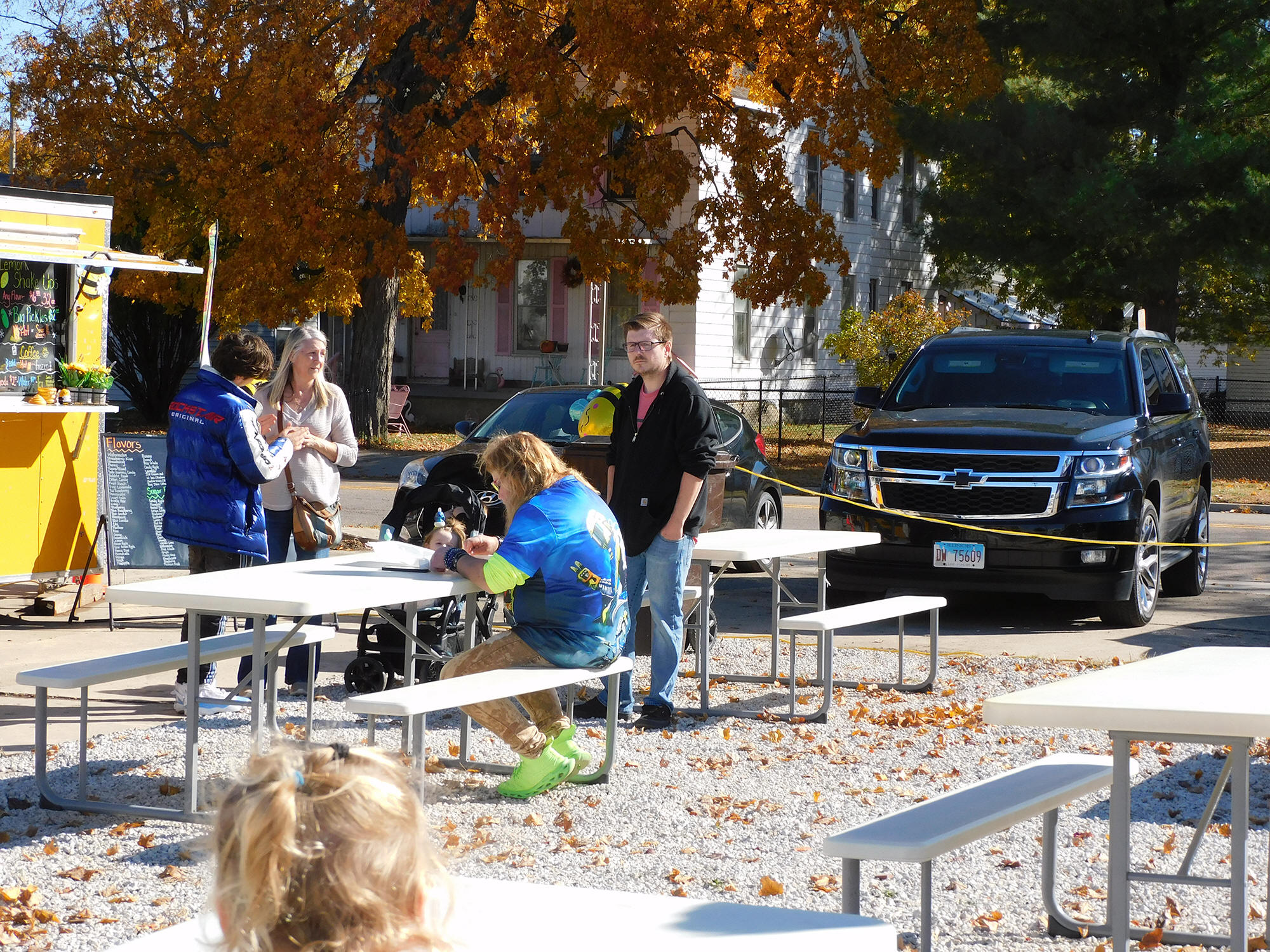 Saturday turned out to be a beautiful day in Lincoln. Although it was the seventh day of November, the sun was shining brightly, and temperatures were in the mid-sixties. It made for an ideal day for folks to come out and enjoy the offerings of the new Taste of Lincoln food court on North Kickapoo Street. Located just north of the Ace Hardware store, the property is owned by Tim Brady and Wendy Long. They, along with son Cody Brady, have been working to establish a great location for a variety of local food truck/wagons to set up and sell their delicious offerings to the public. The trucks line the outer edge of the court with concrete walkways all around the area. In the center of the court, the gravel area offers picnic tables for folks who wish to sit down and enjoy their food on the spot.
