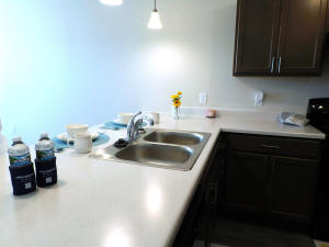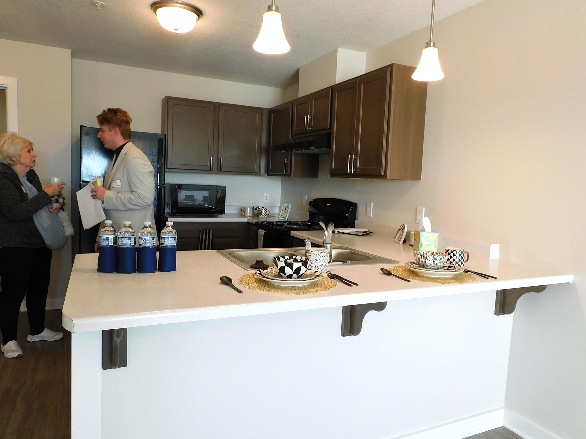 community room two apartments were open for tour, a one-bedroom and