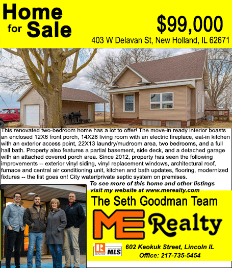 All real estate advertised in the Lincoln Daily News is subject to the Fair Housing Act for 1968 which makes it illegal to advertised "any preference, limitation, or discrimination based on race, color, religion, sex or national origin, or intention to make special preference, limitations, or discrimination."