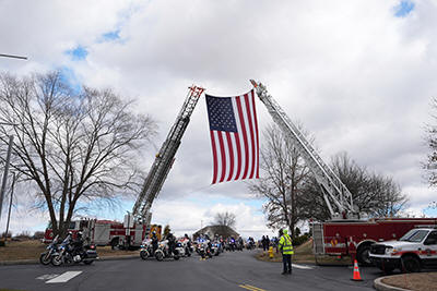 arrives for the funeral of West York Borough Police Officer Andrew