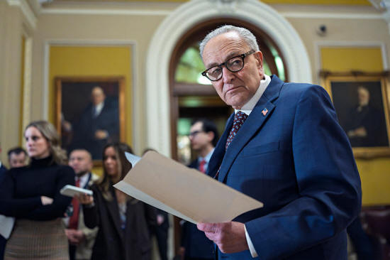 Senate Minority Leader Chuck Schumer, D-N.Y., waits to speak to