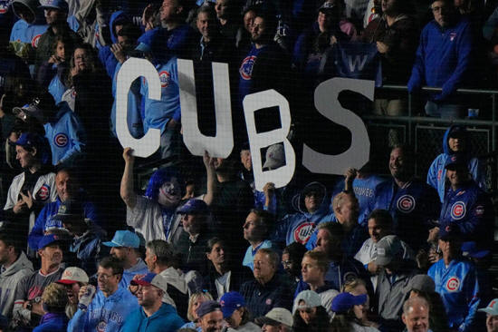 Fans cheer at Wrigley Field during the seventh inning of Game 3