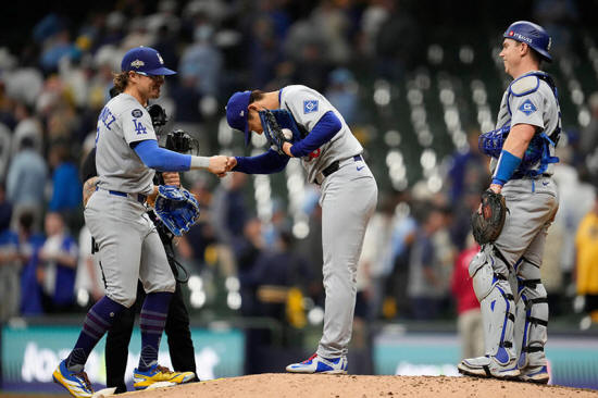 spectacular and Dodgers barely hold on in 9th to beat Brewers 2-1 in