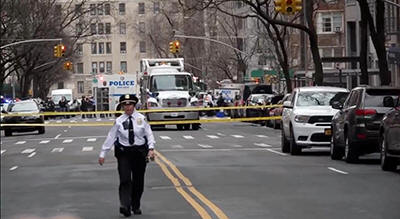 from video, law enforcement officers respond to Manhattan's Upper
