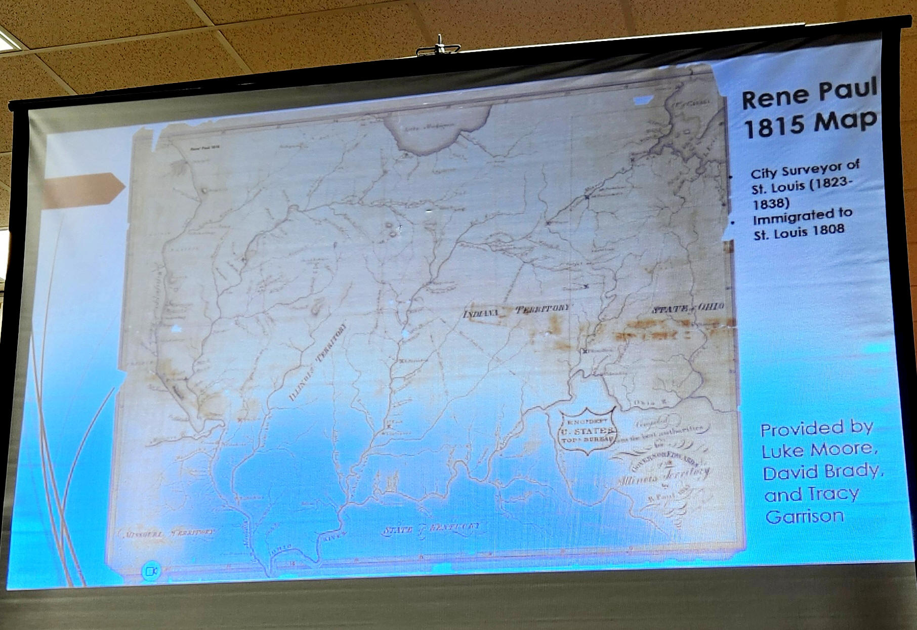 St. Louis city surveyor Rene Paul shows the Edwards Trace starting