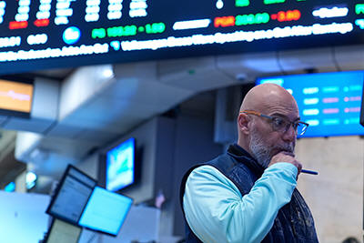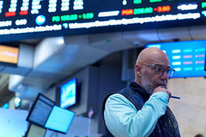 Traders work on the floor at the New York Stock Exchange in New