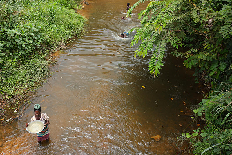 A woman fetches water from a stream in the Jema community in the