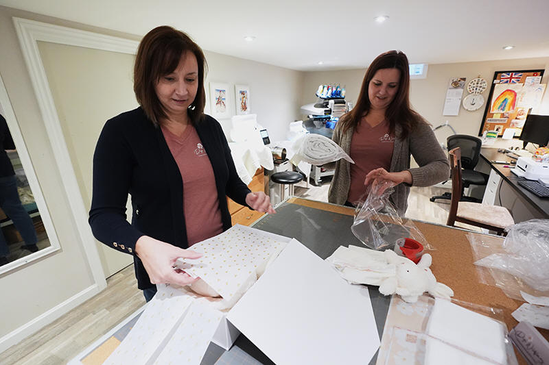 Fran Poirier, left, and her sister, Sue Bacarro, right, fill orders