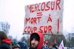 as he participates in a demonstration against the EU-Mercusor trade