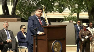 Illinois Gov. J.B. Pritzker speaks at the Peace Officers Memorial