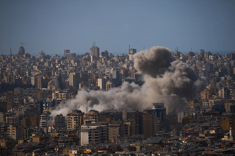 Smoke rises from Israeli airstrikes in Dahiyeh, a southern suburb of
