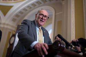 Senate Minority Leader Chuck Schumer, D-N.Y., meets with reporters