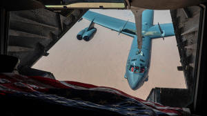 Stratofortress approaching a KC-10 Extender for refueling over the