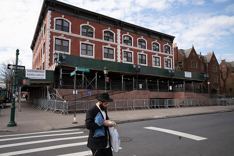 A man passes the Chabad-Lubavitch World Headquarters in the Crown