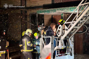nine-story building in Dnipro, the emergency services said.
