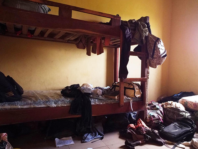 Students' belongings are seen inside a dormitory of an orphanage that