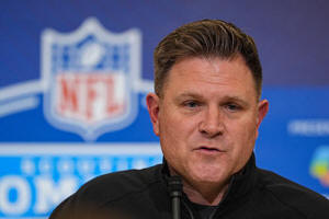 press conference at the NFL football scouting combine in
