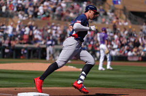 against the Colorado Rockies during the first inning of an
