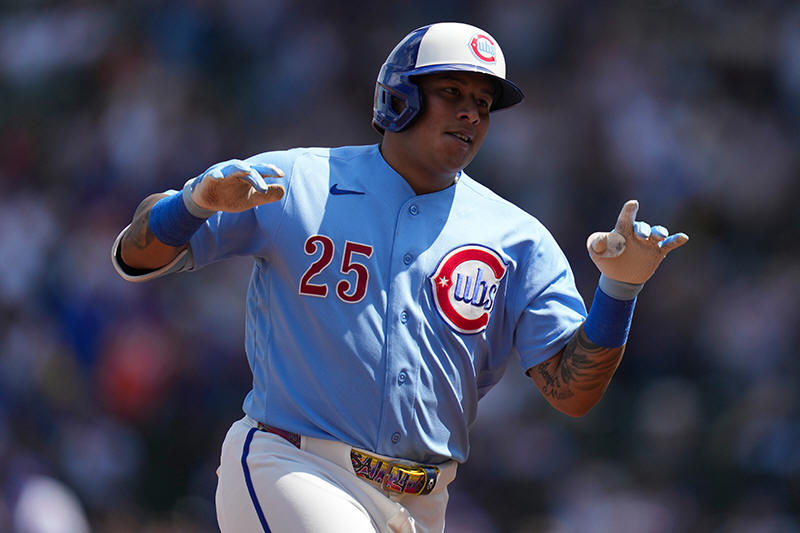 Chicago Cubs designated hitter Moises Ballesteros (25) runs the bases