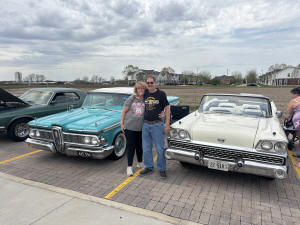 white and baby blue 1959 Fairlane and a turquoise 1959 Edsel. They