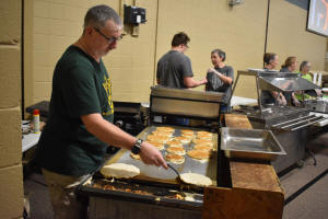 Students, parents, and sponsors manned the griddle and serving