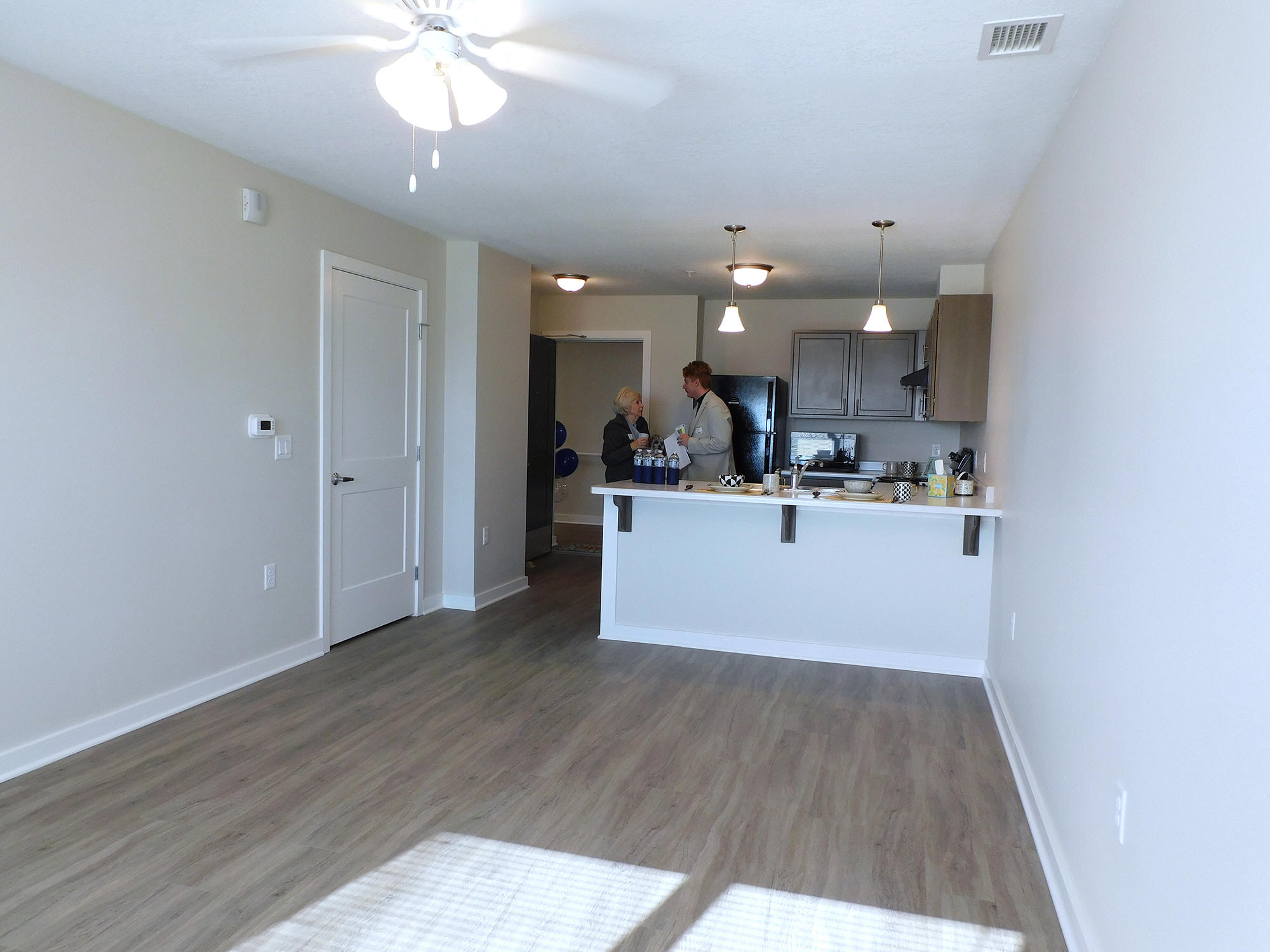 community room two apartments were open for tour, a one-bedroom and