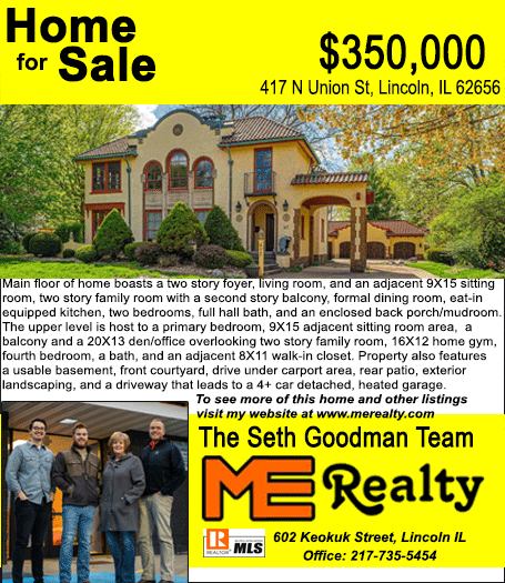 All real estate advertised in the Lincoln Daily News is subject to the Fair Housing Act for 1968 which makes it illegal to advertised "any preference, limitation, or discrimination based on race, color, religion, sex or national origin, or intention to make special preference, limitations, or discrimination."