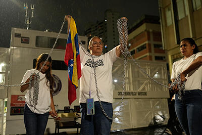 chains in front of police guarding the Zona 7 Bolivarian National